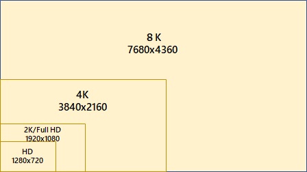 2K/4K/8Kの大きさを並べて比べてみると、「4K」、「8K」が如何に大きいものかがよくわかります。